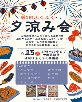 第1回ふくふく夕涼み会を9月15日に行いました~😊